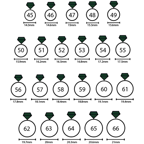 عدد داخل دایره، سایز استاندارد انگشتر شما را نشان خواهد داد.